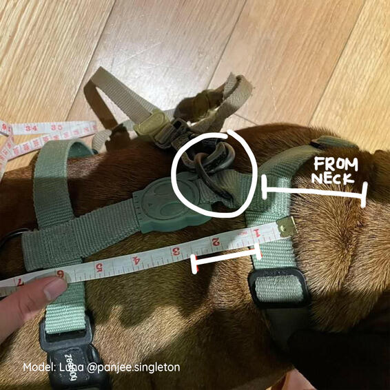 Place the harness on your pet and measure your preferred size for opening. Use the measurement of the leash attachment from the base of the neck.*Best to send me a photo reference for this or I can send you the outfit first then you can mark where we'll put a holeThis measurement is most useful for: