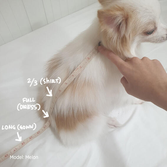 Pawtelier de Melon's size chart uses the Full Body Length measurement as a standardShirts and jackets are NOT full length garments and will typically end at the 2/3 Body Length. If you'd like a different length, do let me know!